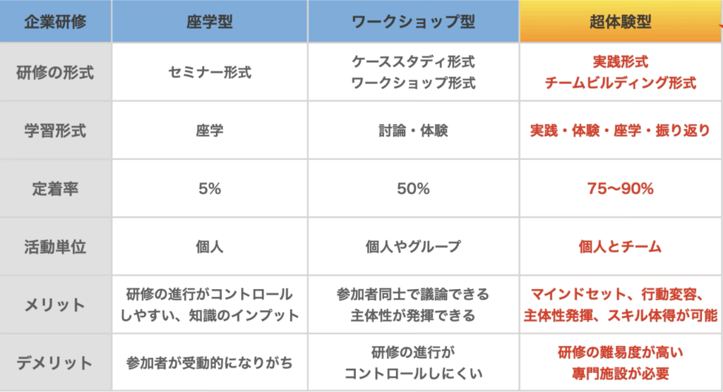 従来の研修では、知識のインプットに偏重しがちであり、受講者は受動的に話を聞くだけで終わってしまうことが少なくありません。しかし、現在の企業環境では、得た知識を即座に行動へと変換し、結果へと結びつける能力が求められています。そのため、単なる座学ではなく、実際に体を動かし、感情を刺激され、自己の在り方を問い直すような「超体験型」研修が注目を集めています。